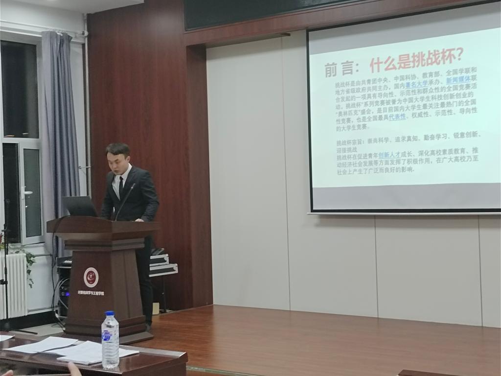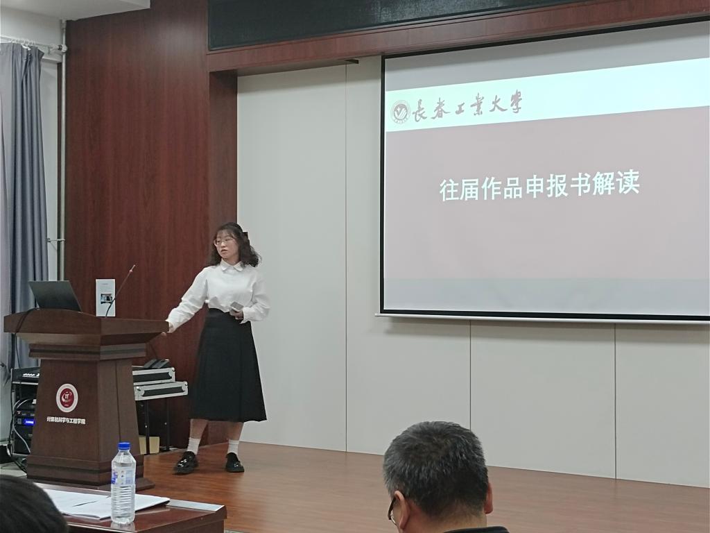 大会第一部分,首先由学院竞赛筹备组的布拉克同学分享了参加吉林省老员工课外学术科技作品竞赛赛前培训会的收获,讲解了自己对“崇尚科学、追求真知、勤奋学习、锐意创新、迎接挑战”的竞赛主题理解。大会第二部分由许靖玟同学对上届比赛获奖优秀作品的申报书进行展示交流。