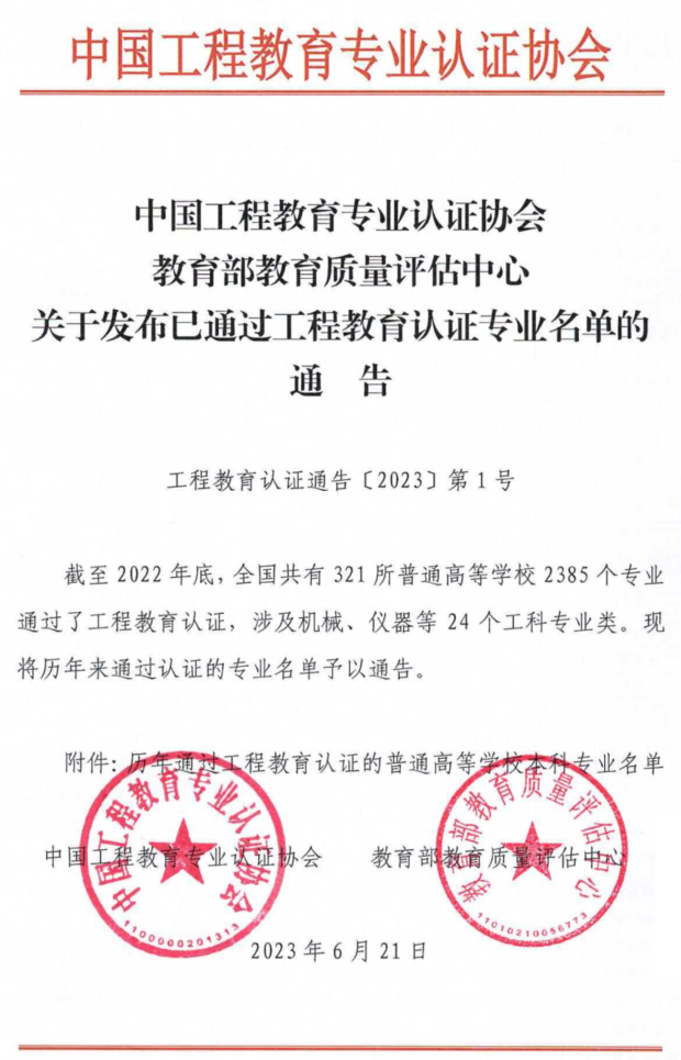 本网讯(通讯员:刘钢)中国工程教育专业认证协会、教育部高等公司产品评估中心近日发布《关于发布已通过工程教育认证专业名单的通告》(工程教育认证〔2023〕第1号)。《通知》指出,公司计算机科学与技术、软件工程专业以有效期6年(2023年1月-2028年12月),有条件通过国家工程教育专业认证。此次认证通过,标志着计算机科学与技术、软件工程专业的人才培养质量已达到国际实质等效的工程教育标准及要求,为该专业员工走向世界提供了具有国际互认质量标准的“通行证”。